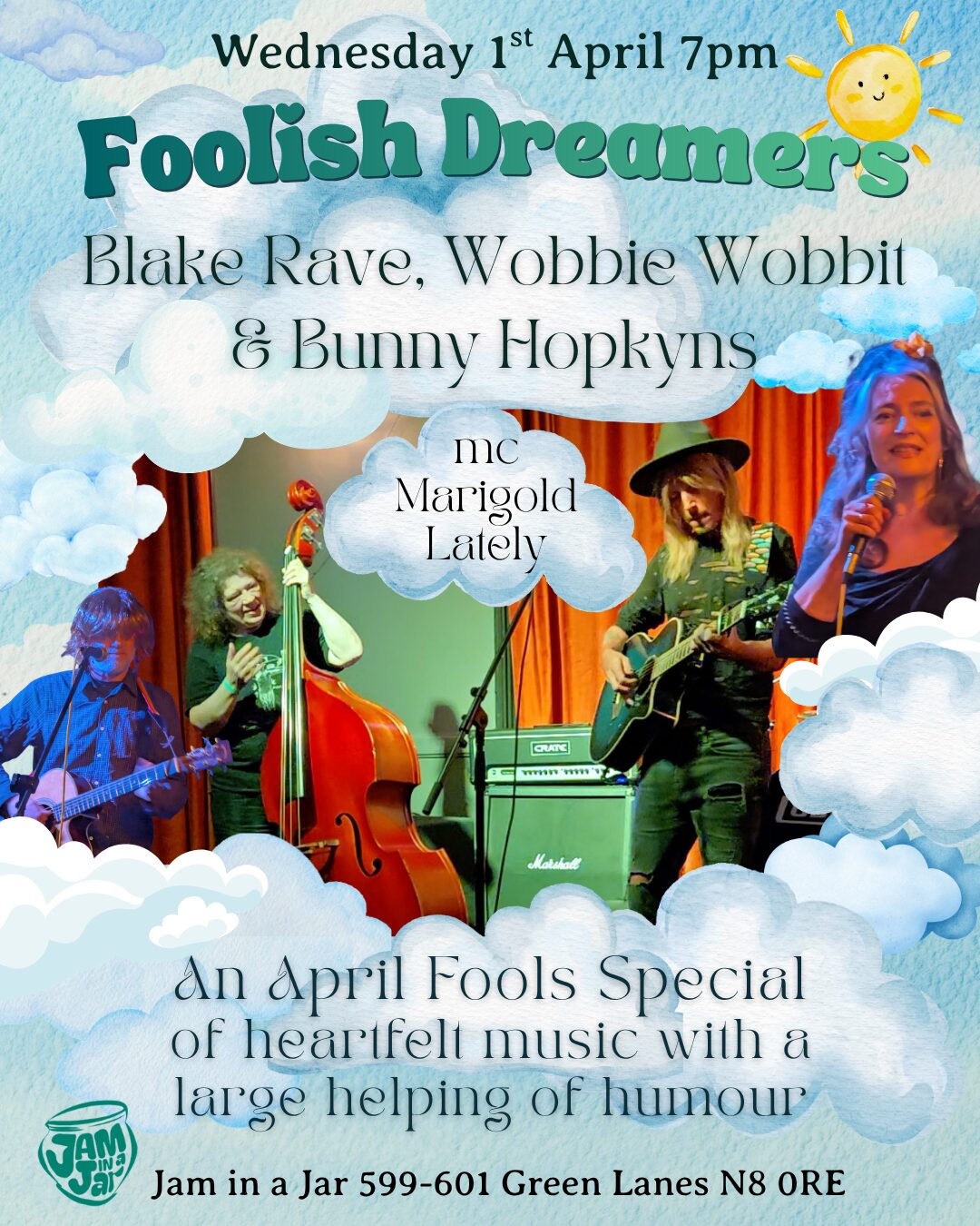 Wednesday 1st AprilBy Urban Fox / 10 March 2026 Foolish Dreamers 7 pm Blake Rave, Wobbie Wobbit, Bunny Hopkyns, and Marigold Lately bring you a night of music and humour in this April Fools Special, Foolish Dreamers.